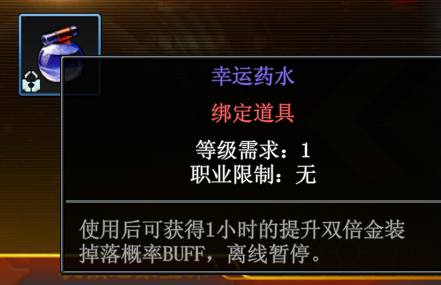 在挑战高难度怪物或BOSS前,使用幸运药水,可以额外增加装备的掉落概率。