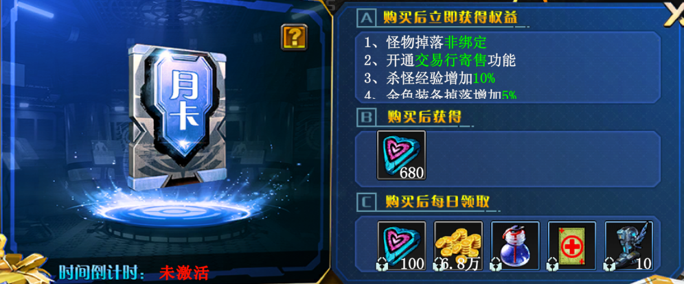 月卡是性价比极高的投资。购买后,你获得的装备会变为非绑定状态。这意味着打到的极品装备如果自己用不上,可以与其他玩家交易,互通有无,赚取资源。