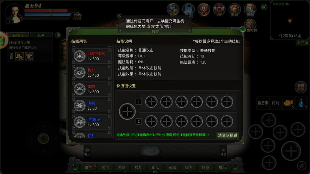 • 回旋枪:范围旋转攻击,清怪神技